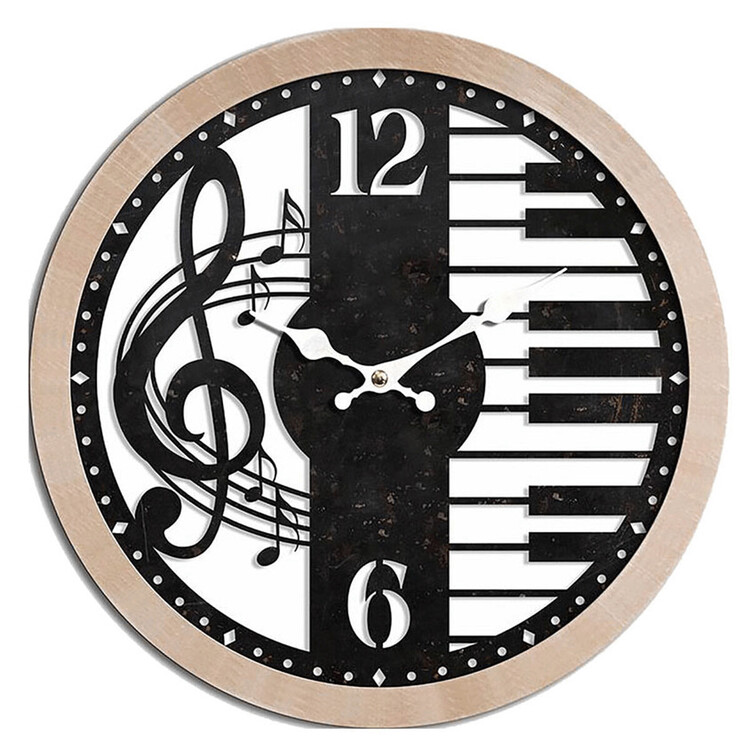 Nástěnné hodiny vytvořené z kombinace kovu a MDF desky s hudebními prvky, jako jsou noty, houslový klíč a klávesy jsou nejen skvělým způsobem, jak sledovat čas, ale také se stávají významným estetickým prvkem domácností nebo kanceláří. Nejenže ukazují ubíhající minuty, ale také zvýrazňují váš... více informací o zboží