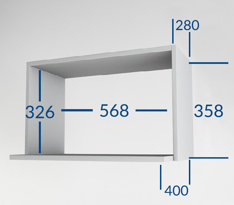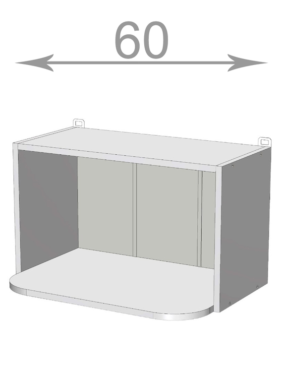 Horní regál na mikrovlnku, šířka 60 cm, bílý korpus. Náleží do kuchyňské sektorové řady Modena. Regál má hlubší dolní polici tak, aby se na ni vešla mikrovlnka až 40 cm hluboká. Cenově výhodná kuchyňská řada Modena má dvířka z kvalitního LTD. Úchytku je možno si vybrat, další kování je v ceně. Z sektoru Modena je možno poskládat si kuchyňskou linku na míru své místnosti. Horní skříňky mají v ceně očka pro zavěšení na zeď. Regulovatelné závěsy lze dokoupit z naší nabídky.