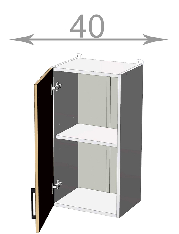 Horní skříňka, šířka 40 cm, 1 dvířka, MDF bílý lesk, bílý korpus. Náleží do kuchyňské sektorové řady Kaiser.Moderní, exkluzivní, ale cenově dostupný. To jsou hlavní přednosti kuchyňského sektoru Kaiser. MDF dvířka jsou potažena HPL vysokotlakým laminátem a mají plastovou hranu ve shodné barvě, což zaručuje vysokou odolnost a výdrž. Nově je možné si vybrat z více než 10ti barev dvířek jak v lesku tak iv matné úpravě. Úchytka je na výběr, ostatní kování je v ceně. Na výběr je mnoho skříněk, ze kterých je možné si vytvořit vlastní sestavu podle potřeby. Horní skříňky mají v ceně očka pro zavěšení na zeď. Regulovatelné závěsy lze dokoupit z naší nabídky. Úchytky ke skříňce se objednávají zvlášť. Na výběr je více než 10 typů úchytek, takže lze vybrat dle vašeho vkusu. Dvířka jsou již předvrtána na rozteč 128 mm.