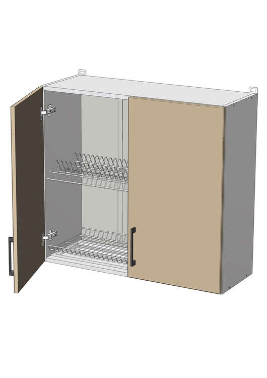Horní skříňka s odkapávačem, šířka 80 cm, 2 dvířka šedá činčila, grafit korpus. Náleží do kuchyňské sektorové řady Modena. Uvnitř skříňky je vestavěný odkapávač na nádobí. Moderní levný kuchyňský sektor Modest je vyroben z odolného LTD. V ceně je příslušné kování. Z jednotlivých skříněk je možno si vyskládat kuchyni na míru dle potřeb. Horní skříňky mají v ceně očka pro zavěšení na zeď. Regulovatelné závěsy lze dokoupit z naší nabídky. Úchytky ke skříňce se objednávají zvlášť. Na výběr je více než 10 typů úchytek, takže lze vybrat dle vašeho vkusu. Dvířka jsou již předvrtána na rozteč 128 mm.