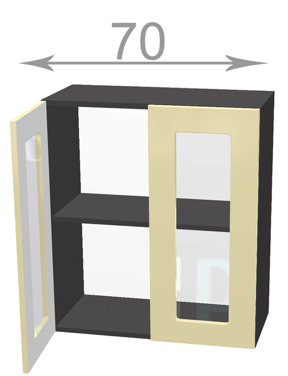 Horní vitrína, šířka 70 cm, 2 dvířka ořech tmavý, bílý korpus. Náleží do kuchyňské sektorové řady Horizon.Cenově atraktivní kuchyňský sektor Horizon ve vintage stylu je vyroben z odolného LTD. Úchytka je na výběr, ostatní kování je v ceně. Kuchyně Horizon je výjimečná horizontálním uložením kresby dřeva na dvířkách. Z jednotlivých skříněk je možno poskládat si sestavu na míru své kuchyně. Horní skříňky mají v ceně očka pro zavěšení na zeď. Regulovatelné závěsy lze dokoupit z naší nabídky. Úchytky ke skříňce se objednávají zvlášť. Na výběr je více než 10 typů úchytek, takže lze vybrat dle vašeho vkusu. Dvířka jsou již předvrtána na rozteč 128 mm.