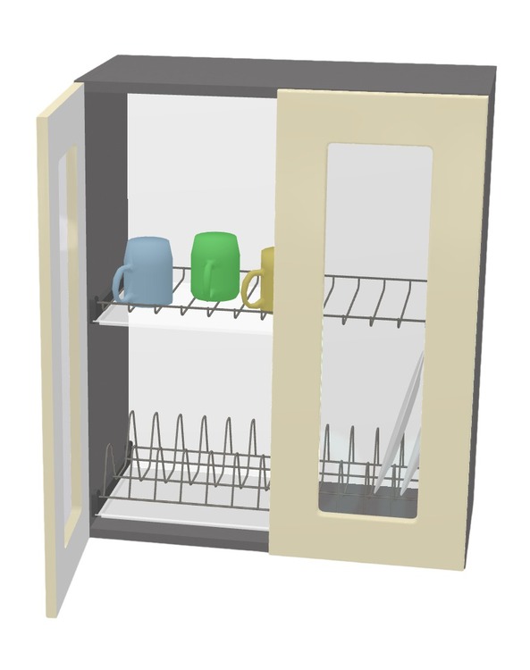 Horní vitrína s odkapávačem, šířka 80 cm, 2 dvířka antracit, grafit korpus. Náleží do kuchyňské sektorové řady Modena. Uvnitř skříňky je vestavěný odkapávač na nádobí. Moderní levný kuchyňský sektor Modest je vyroben z odolného LTD. V ceně je příslušné kování. Z jednotlivých skříněk je možno si vyskládat kuchyni na míru dle potřeb. Horní skříňky mají v ceně očka pro zavěšení na zeď. Regulovatelné závěsy lze dokoupit z naší nabídky. Úchytky ke skříňce se objednávají zvlášť. Na výběr je více než 10 typů úchytek, takže lze vybrat dle vašeho vkusu. Dvířka jsou již předvrtána na rozteč 128 mm.