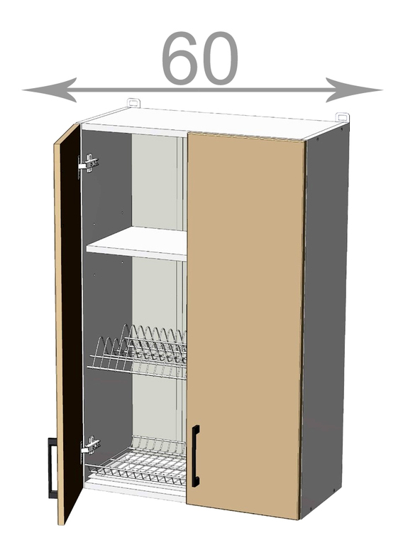 Horní vysoká skříňka s odkapávačem, šířka 60 cm, 2 dvířka dub clubhouse, grafit korpus. Náleží do kuchyňské sektorové řady Horizon. Vyšší skříňka s odkapávačem na nádobí do zástavby horních skříněk 92 cm. Cenově atraktivní kuchyňský sektor Horizon ve vintage stylu je vyroben z odolného LTD. Úchytka je na výběr, ostatní kování je v ceně. Kuchyně Horizon je výjimečná horizontálním uložením kresby dřeva na dvířkách. Z jednotlivých skříněk je možno poskládat si sestavu na míru své kuchyně. Horní skříňky mají v ceně očka pro zavěšení na zeď. Regulovatelné závěsy lze dokoupit z naší nabídky. Úchytky ke skříňce se objednávají zvlášť. Na výběr je více než 10 typů úchytek, takže lze vybrat dle vašeho vkusu. Dvířka jsou již předvrtána na rozteč 128 mm.
