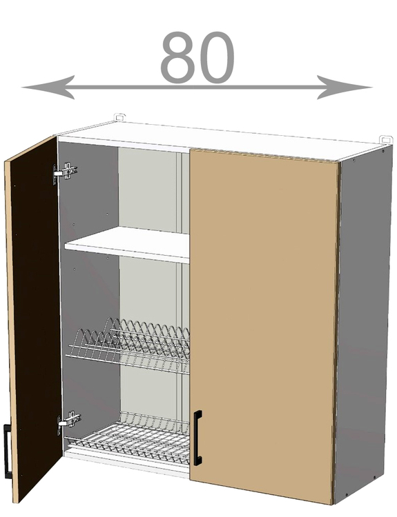 Horní vysoká skříňka s odkapávačem, šířka 80 cm, 2 dvířka, MDF ledově šedý lesk, bílý korpus. Náleží do kuchyňské sektorové řady Kaiser. Vyšší skříňka s odkapávačem na nádobí do zástavby horních skříněk 92 cm. Moderní, exkluzivní, ale cenově dostupný. To jsou hlavní přednosti kuchyňského... více informací o zboží