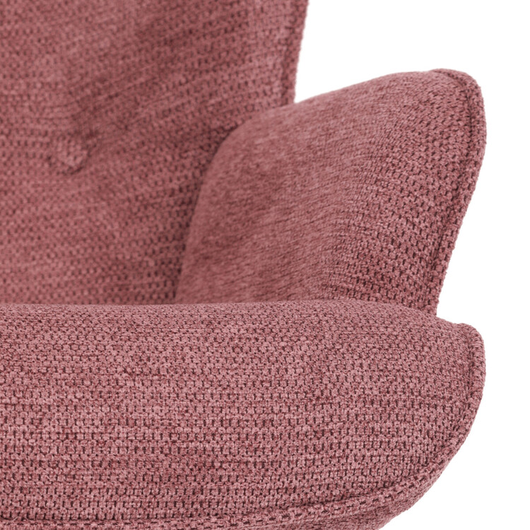 Houpací křeslo s označením AK-373 PINK2 nabízí kombinaci komfortu a stylu díky svému designu a kvalitním materiálům. Sedací část je potažena prémiovou růžovou látkou, která je příjemná na dotek a navržena pro dlouhou životnost. Područky zajišťují pohodlnou oporu při sezení, zatímco pevná podnož z černého kovu je doplněna o houpací lišty z masivního kaučukovníku, které umožňují plynulé a tiché houpání. Konstrukce křesla je stabilní a ergonomicky tvarovaná pro maximální relaxaci. Tento model není otočný ani rozkládací, jeho nosnost a rozměry jsou přizpůsobeny běžnému užívání v domácím i komerčním prostředí.