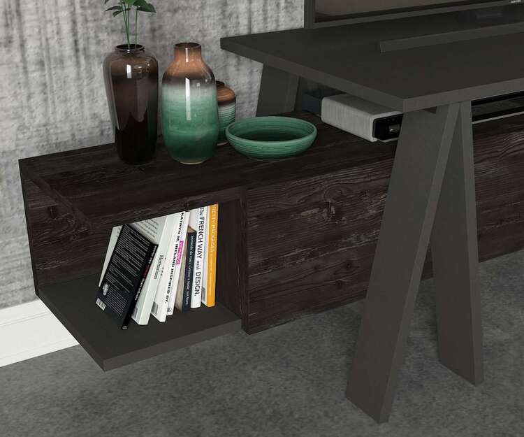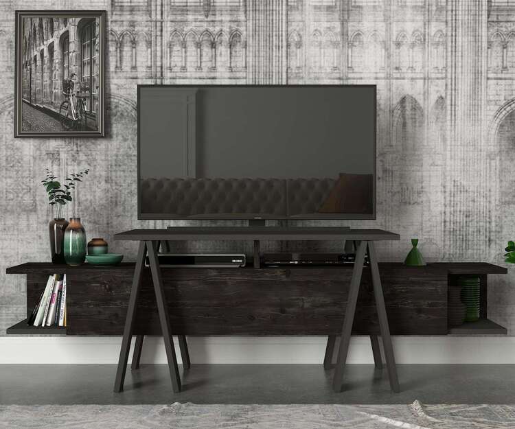 TV stolek je ideální volbou pro ty, kteří hledají moderní a funkční nábytek s elegantním vzhledem. Jeho tmavě hnědá a antracitová barva a minimalistický design přinášejí do vašeho domova teplo a moderní styl.