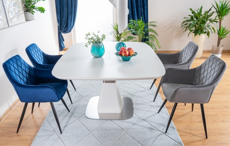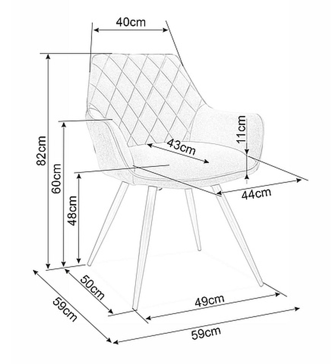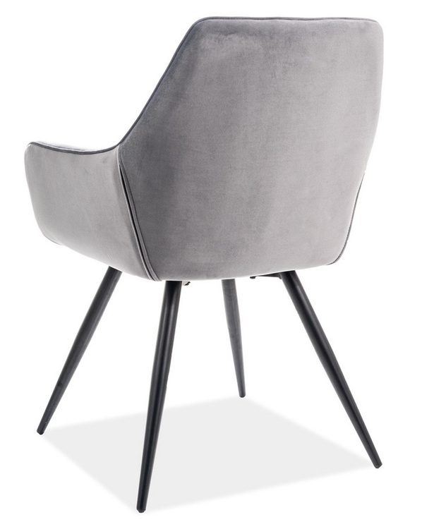 Elegantní čalouněná jídelní židle – křeslo. Konstrukce je z kovu černé barvy. Čalounění židle je z potahové látky ( aksamit 14 ) v šedé barvě. Dodáváme v demontovaném stavu.CASA 11022