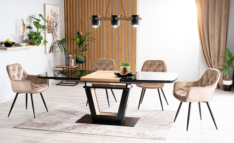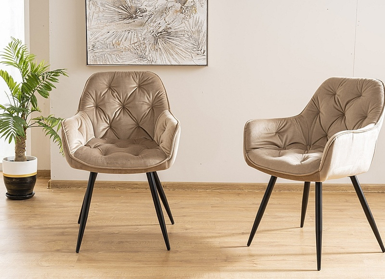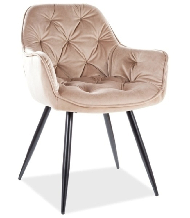 Atraktivní čalouněná židle – křeslo vhodná nejen do Vaší jídelny a kuchyně, ale také do kanceláře, čekárny či recepce. Konstrukce je z kovu černé barvy. Čalounění židle je z potahové látky aksamit (BLUVEL 28) ve béžové barvě. Dodáváme v demontovaném stavu.CASA 11009