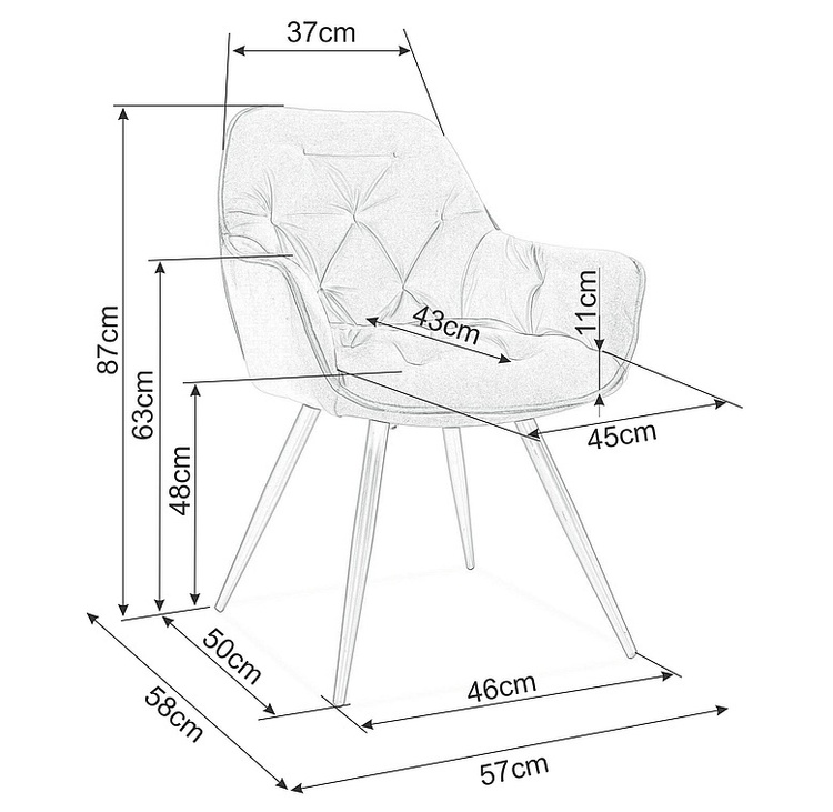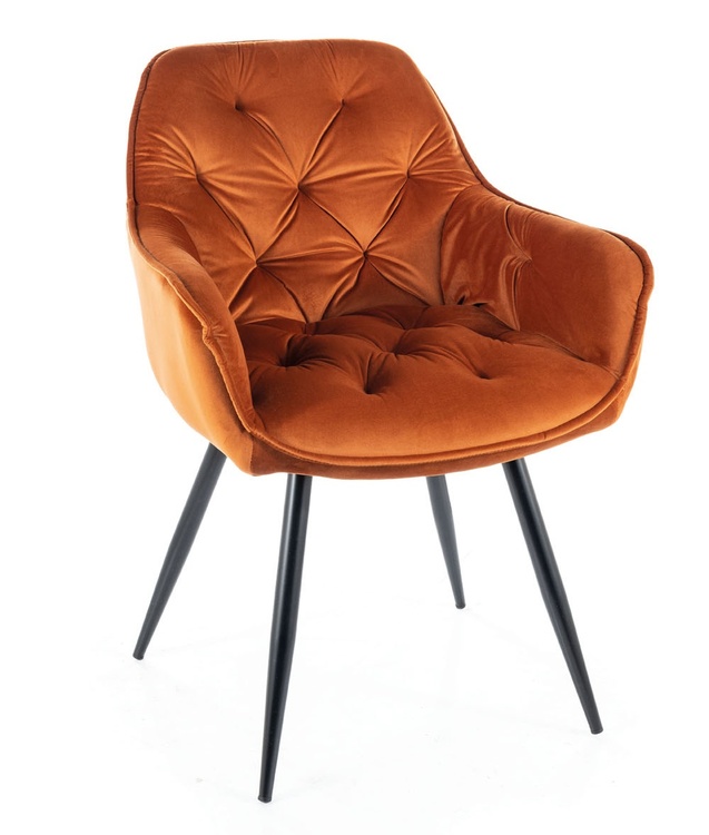 Atraktivní čalouněná židle – křeslo vhodná nejen do Vaší jídelny a kuchyně, ale také do kanceláře, čekárny či recepce. Konstrukce je z kovu černé barvy. Čalounění židle je z látky velvet (BLUVEL 4215) ve skořicově hnědé barvě. Celková výška židle je 87 cm, výška sedáku je 48 cm. Dodáváme v demontovaném stavu.CASA 11009