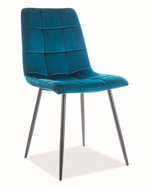 Atraktivní, velice pohodlná čalouněná židle vhodná nejen do Vaší jídelny a kuchyně, ale také do kanceláře, čekárny či recepce. Nohy jsou z kovu v barvě černá mat. Čalounění sedáku je vyrobeno z potahové látky Bluvel aksamit v tyrkysové barvě. Dodáváme v demontovaném stavu.CASA 11787