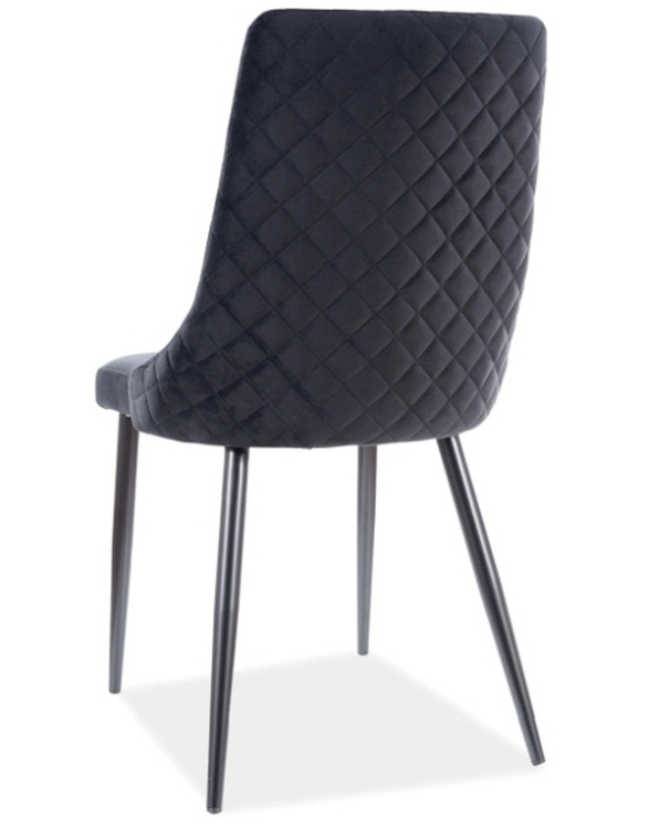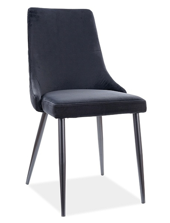 Elegantní čalouněná jídelní židle – křeslo. Konstrukce je z kovu v barvě černá mat. Čalounění židle je z potahové látky velvet aksamit v černé barvě. Dodáváme v demontovaném stavu.CASA 11038
