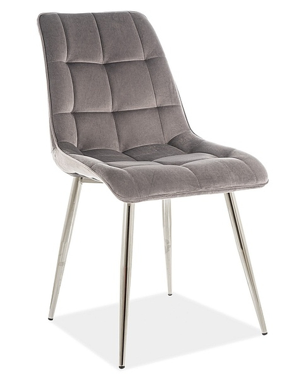 Atraktivní čalouněná židle vhodná nejen do Vaší jídelny a kuchyně, ale také do kanceláře, čekárny či recepce. Kovová konstrukce je v barvě chróm, čalounění je z látky Bluvel aksamit v šedé barvě. Židle se hodí ke stolům, které najdete v naší uvedené nabídce. Dodáváme v demontovaném stavu.CASA 11395