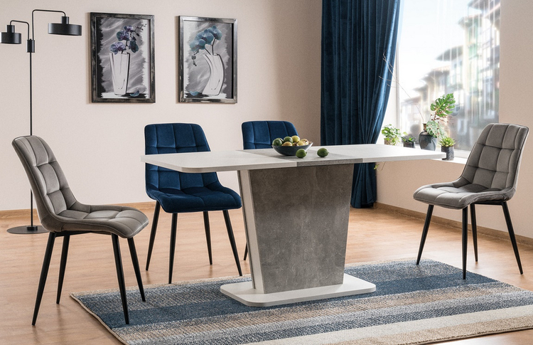 Atraktivní čalouněná židle vhodná nejen do Vaší jídelny a kuchyně, ale také do kanceláře, čekárny či recepce. Kovová konstrukce je lakovaná černou barvou, čalounění je z látky velvet v granátově modré barvě. Židle se hodí ke stolům, které najdete v naší uvedené nabídce. Dodáváme v demontovaném stavu.CASA 11395