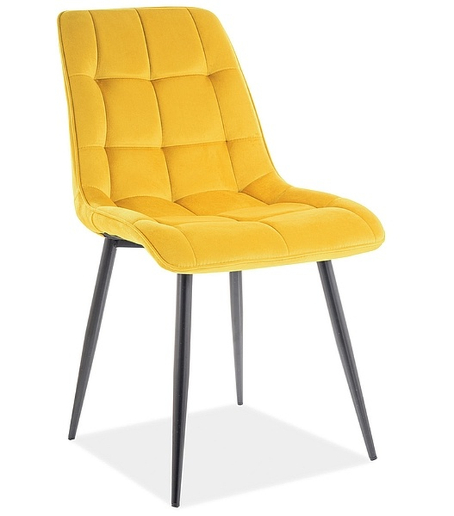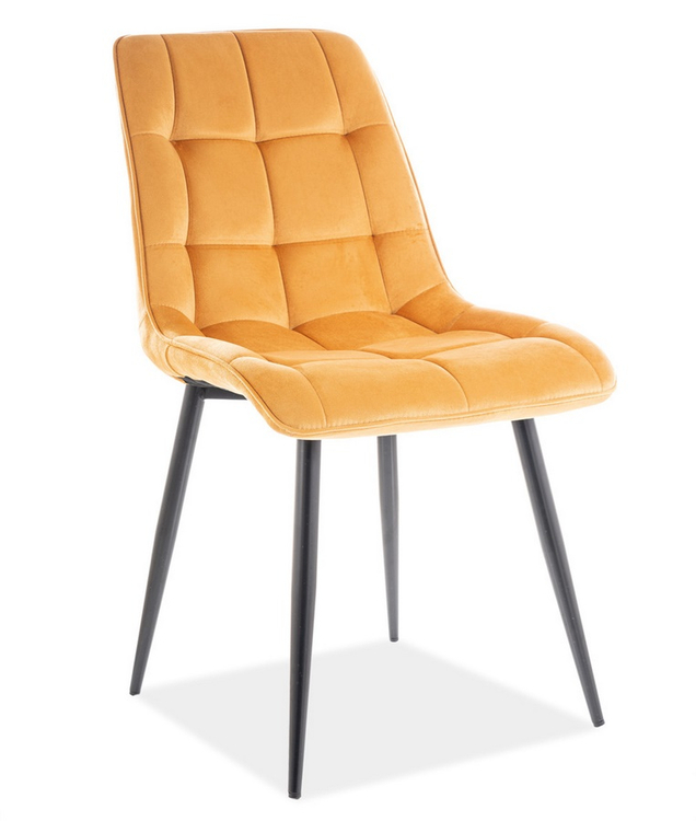 Atraktivní čalouněná židle vhodná nejen do Vaší jídelny a kuchyně, ale také do kanceláře, čekárny či recepce. Kovová konstrukce je lakovaná černou barvou, čalounění je z látky velvet v barvě žlutá curry. Židle se hodí ke stolům, které najdete v naší uvedené nabídce. Dodáváme v demontovaném stavu.CASA 11395