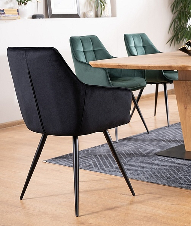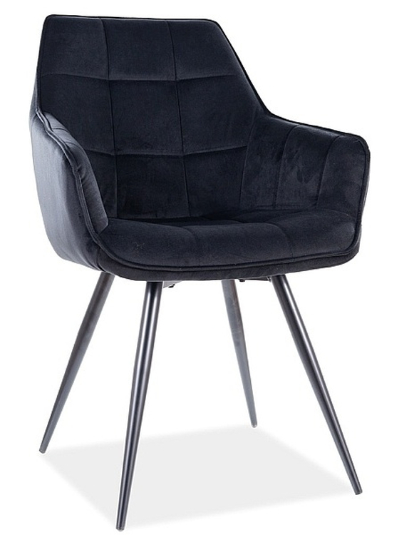 Atraktivní, velice pohodlná čalouněná židle vhodná nejen do Vaší jídelny a kuchyně, ale také do kanceláře, čekárny či recepce. Kovová konstrukce je lakovaná černou matnou barvou, čalounění je z látky bluvel v černé barvě s elegantním prošíváním. Židle se hodí ke stolům, které najdete v naší uvedené nabídce.CASA 11887