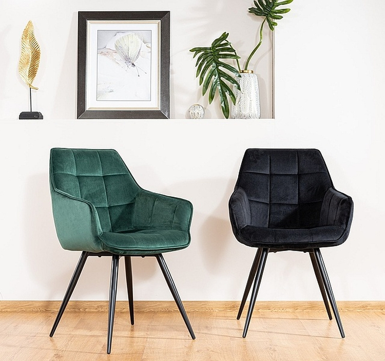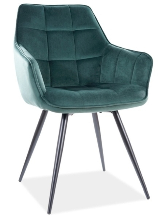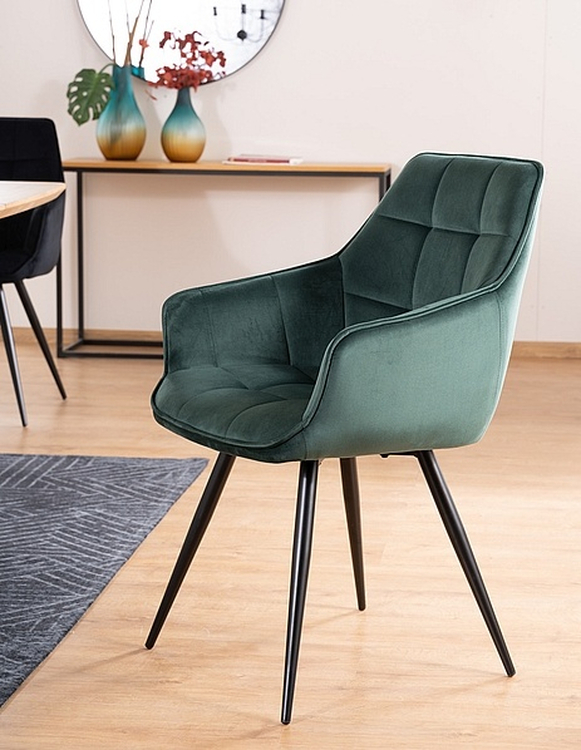 Atraktivní, velice pohodlná čalouněná židle vhodná nejen do Vaší jídelny a kuchyně, ale také do kanceláře, čekárny či recepce. Kovová konstrukce je lakovaná černou matnou barvou, čalounění je z látky bluvel v zelené barvě s elegantním prošíváním. Židle se hodí ke stolům, které najdete v naší uvedené nabídce.CASA 11887