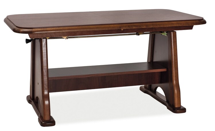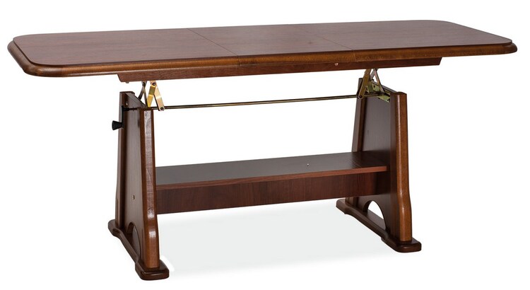 Elegantní konferenční stůl s funkcí jídelního stolu v klasickém duchu. Zajímavý vzhled stolu vyzdvihují jemné tvary a dokonalé detaily. Výhodou tohoto stolu je nastavitelná výška, kdy po zvýšení a rozkladu desky je možno použít stůl ke stolování. Nohy jsou vyrobeny z kvalitního přírodního dřeva, deska z LTD v barevném provedení – kaštan ( barva viz vzorník ). Plocha před rozložením je 67 × 130 cm, po rozložení 67 × 170 cm. Stůl je určený až pro 6 osob. K tomuto stolu doporučujeme židle v naší nabídce.CASA 11150