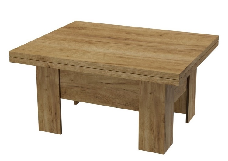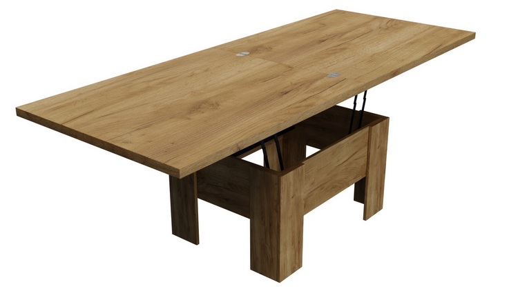 Elegantní konferenční stůl s funkcí jídelního stolu v moderním pojetí. Výhodou tohoto stolu je nastavitelná výška, kdy po zvýšení a rozkladu desky je možno ho použít ke stolování. Masivní deska je z LTD 32 mm opatřena ABS páskou 2 mm, otevírací mechanismus je vysoké kvality. Barevné provedení – dub ribbek. Plocha před rozložením je 80 × 100 cm, po rozložení 80 × 200 cm. Výška se po rozkladu z 53 cm zvýší na 78 cm. Dodáváme v demontovaném stavu.CASA 71004