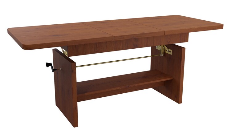 Elegantní konferenční stůl s funkcí jídelního stolu v moderním pojetí. Výhodou tohoto stolu je nastavitelná výška, kdy po zvýšení a rozkladu desky je možno ho použít ke stolování. Masivní deska je z LTD 32 mm opatřena ABS páskou 2 mm, otevírací mechanismus je vysoké kvality. Barevné provedení – dub stoletý. Plocha před rozložením je 116 × 62 cm, po rozložení 156 × 62 cm. Výška se z 59 cm zvýší na 70 cm. Dodáváme v demontovaném stavu.CASA 71025