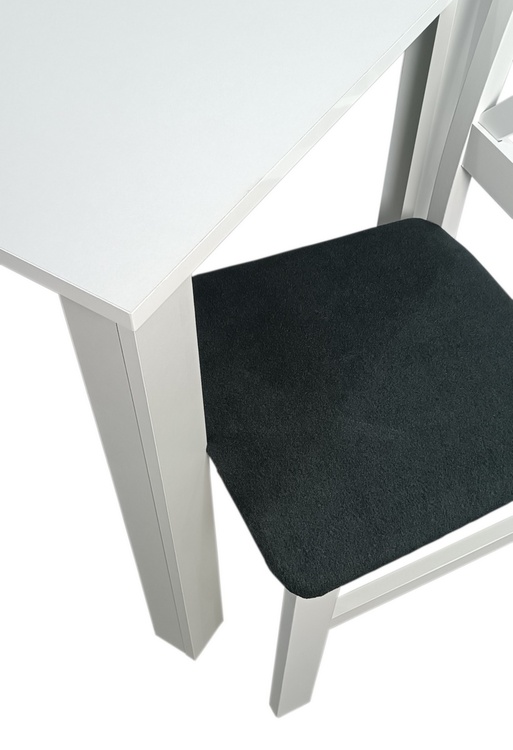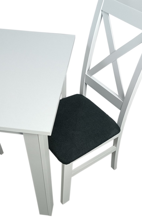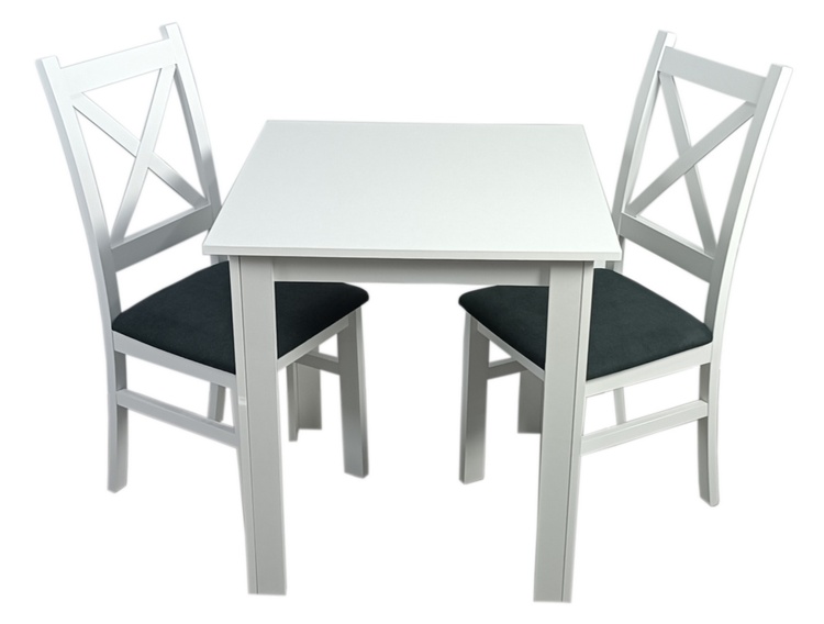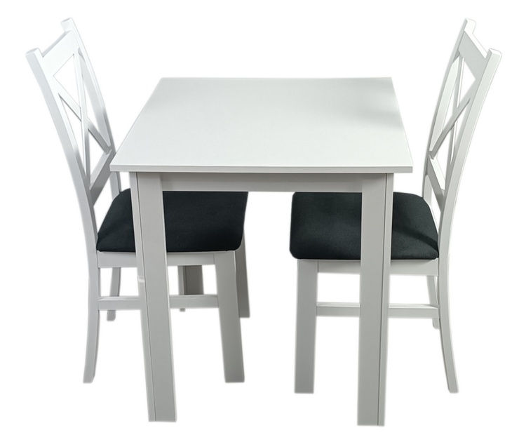 Jídelní sestava 1 stolu a 2 židlí. Deska jídelního stolu je vyrobena z LTD, nohy stolu jsou z materiálu MDF a konstrukce židlí z bukového dřeva, obojí v barvě bílá mat, vše hraněné ABS páskou. Židle má čalouněný sedák v látce Moric 8 (černá),výplň sedáku PUR pěna T30. Jednotlivé díly lze... více informací o zboží