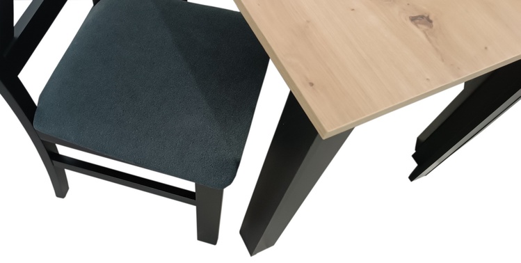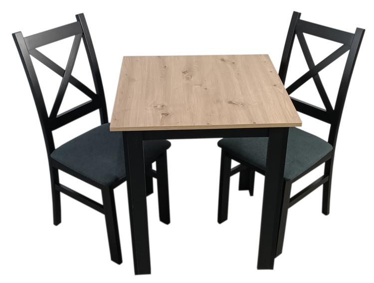 Jídelní sestava 1 stolu a 2 židlí. Deska jídelního stolu je vyrobena z LTD v barvě dub artisan, nohy stolu jsou z materiálu MDF a konstrukce židlí z bukového dřeva, obojí v barvě černá mat, vše hraněné ABS páskou. Židle má čalouněný sedák v látce Moric 8 (černá),výplň sedáku PUR pěna T30.... více informací o zboží