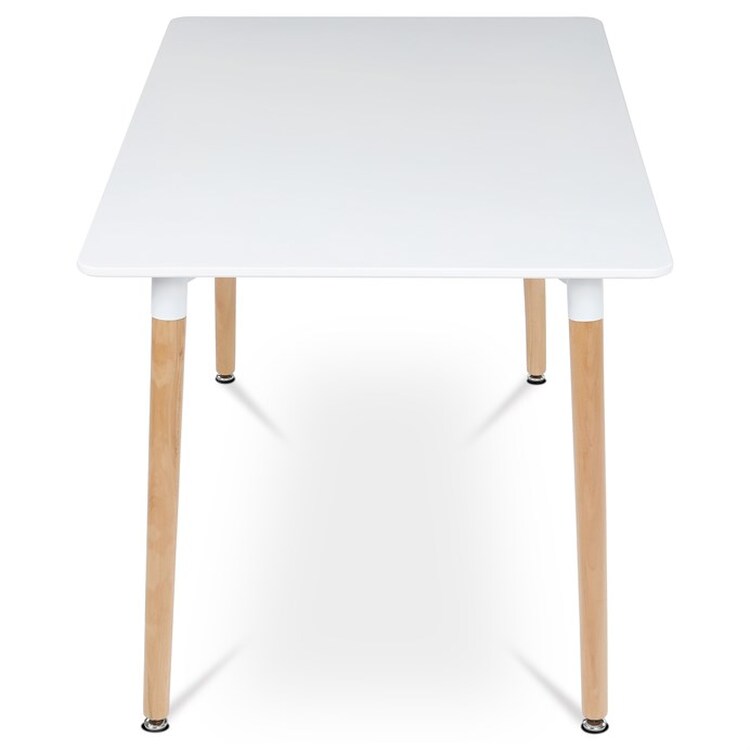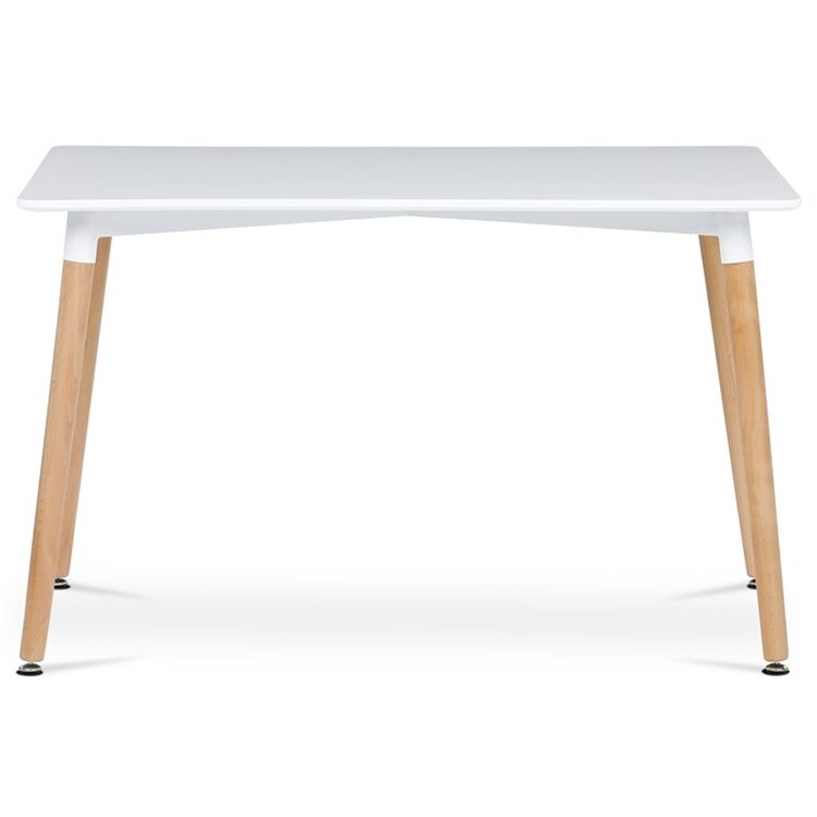 Jídelní stůl o rozměrech 120×80 cm kombinuje pevnou MDF desku s matnou bílou povrchovou úpravou a masivními dřevěnými nohami, které dodávají stabilitu a přírodní vzhled. Deska stolu je opatřena zaoblenými rohy pro zvýšení bezpečnosti a pohodlí při používání. Konstrukce nohou je vybavena rektifikačními prvky, které umožňují vyrovnání nerovností podlahy a zajišťují tak stabilní postavení stolu. Celkový design je jednoduchý a moderní, vhodný do různých typů interiérů. Stůl je určen pro každodenní použití v jídelnách či kuchyních, kde oceníte jeho pevnost a snadnou údržbu.