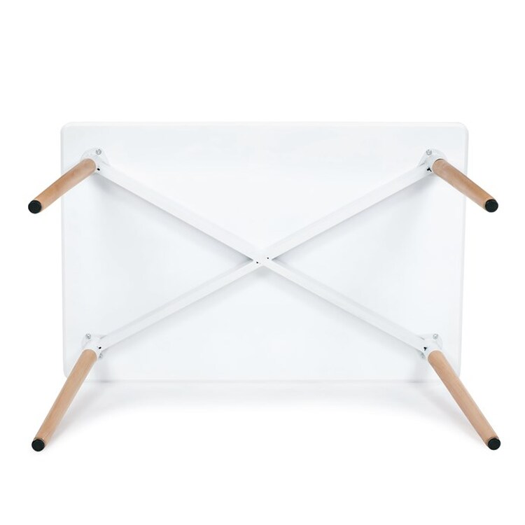 Jídelní stůl o rozměrech 120×80 cm kombinuje pevnou MDF desku s matnou bílou povrchovou úpravou a masivními dřevěnými nohami, které dodávají stabilitu a přírodní vzhled. Deska stolu je opatřena zaoblenými rohy pro zvýšení bezpečnosti a pohodlí při používání. Konstrukce nohou je vybavena... více informací o zboží