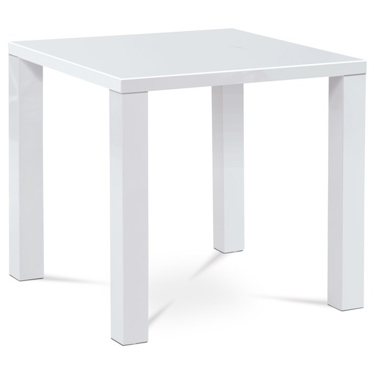 Jídelní stůl o rozměrech 80×80×76 cm nabízí moderní design v bílém vysokém lesku, který dodává prostoru svěží a čistý vzhled. Deska i nohy jsou vyrobeny z MDF materiálu s hladkým povrchem, který se snadno udržuje a je odolný vůči běžnému opotřebení. Zaoblené rohy zvyšují bezpečnost a... více informací o zboží