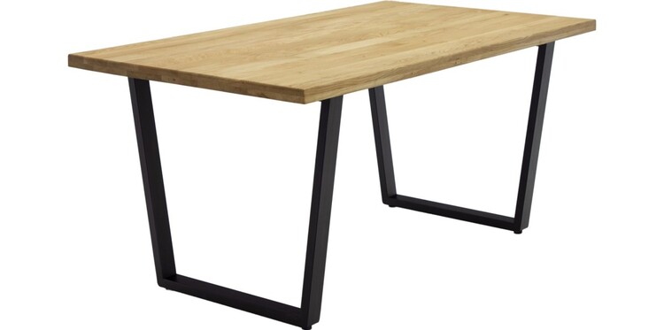 kovové nohy ve tvaru sešikmeného U dodávají stolu současný,