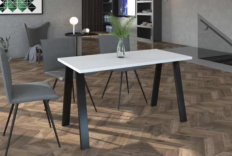 Jídelní stůl je vyroben v jednoduchém industriálním, stylovém a zároveň i moderním designu. Stolová deska je vyrobena z lamina tl.28 mm v barvě bílá, kovové nohy jsou práškově lakované v černé barvě (profil nohy 80×40 mm). Tyto jídelní stoly nabízíme v různých rozměrech a barvách. Dodáváme v demontovaném stavu.CASA 87020