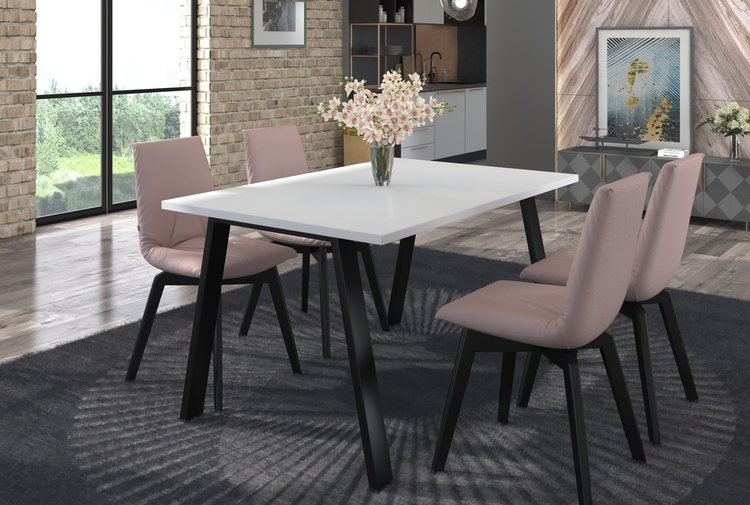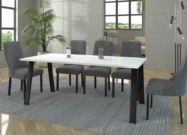 Jídelní stůl je vyroben v jednoduchém industriálním, stylovém a zároveň i moderním designu. Stolová deska je vyrobena z lamina tl.28 mm v barvě bílá, kovové nohy jsou práškově lakované v černé barvě (profil nohy 80×40 mm). Tyto jídelní stoly nabízíme v různých rozměrech a barvách. Dodáváme v demontovaném stavu.CASA 87020