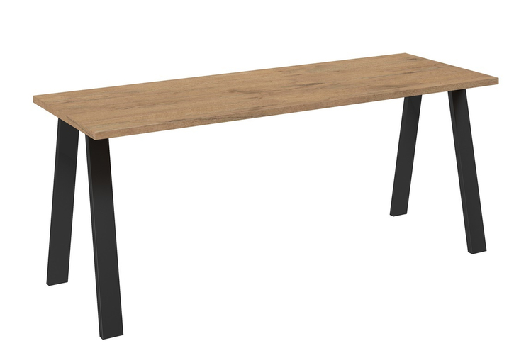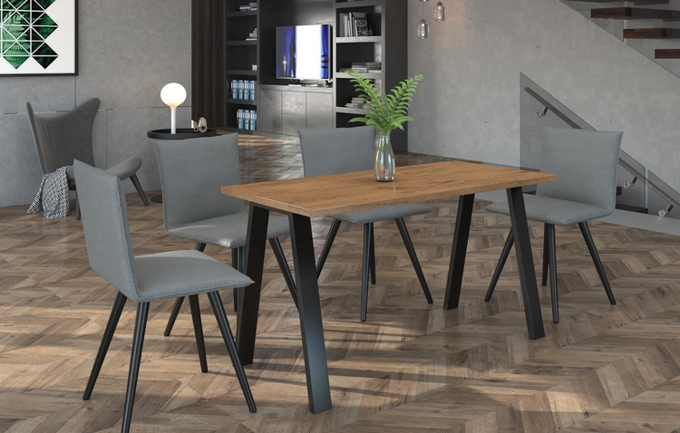 Jídelní stůl je vyroben v jednoduchém industriálním, stylovém a zároveň i moderním designu. Stolová deska je vyrobena z lamina tl.28 mm v barvě dub lancelot, kovové nohy jsou práškově lakované v černé barvě (profil nohy 80×40 mm). Tyto jídelní stoly nabízíme v různých rozměrech a barvách. Dodáváme v demontovaném stavu.CASA 87020