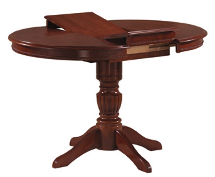 Elegantní jídelní stůl v rustikálním duchu. Zajímavý vzhled stolu vyzdvihují jemné tvary a dokonalými detaily. Tento kulatý stůl je vyrobený z kvalitního přírodního dřeva v barevném provedení – tmavý ořech. Plocha před rozložením je 90 × 90 cm, po rozložení 90 × 125 cm. Výška stolu je 75 cm.... více informací o zboží