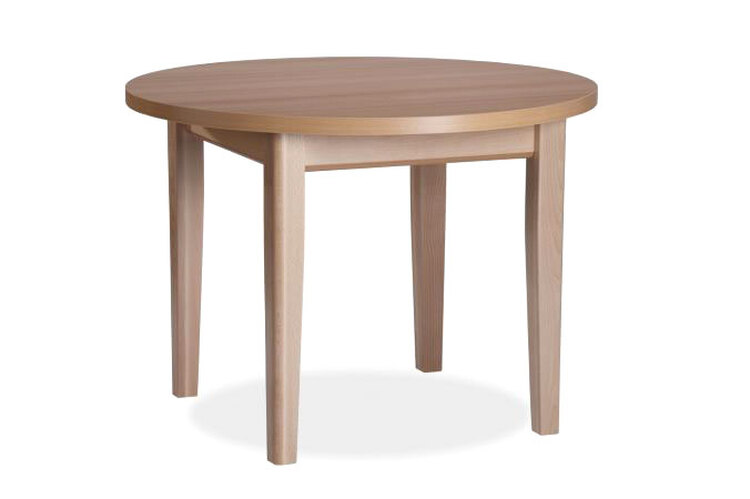 Jídelní kulatý stůl Max je vyroben z lamina 36 mm (horní deska) s hranou ABS 2 mm, nohy z masivního buku. Stůl je rozkládací. Možnost výběru moření viz vzorník. Zakázková výroba.