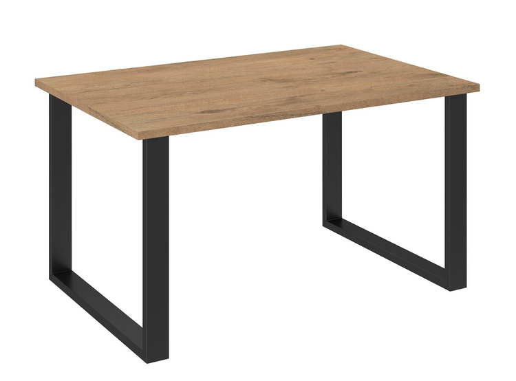 Jídelní stůl je vyroben v jednoduchém industriálním, stylovém a zároveň i moderním designu. Stolová deska je vyrobena z lamina tl. 28 mm v barvě dub lancelot, kovové nohy jsou práškově lakované v černé barvě (profil nohy 80×40 mm). Tyto jídelní stoly nabízíme v různých rozměrech. Dodáváme v demontovaném stavu.CASA 87018