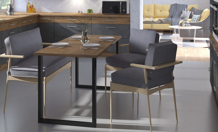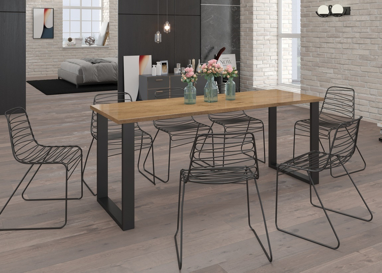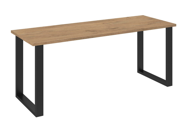 Jídelní stůl je vyroben v jednoduchém industriálním, stylovém a zároveň i moderním designu. Stolová deska je vyrobena z lamina tl. 28 mm v barvě dub lancelot, kovové nohy jsou práškově lakované v černé barvě (profil nohy 80×40 mm). Tyto jídelní stoly nabízíme v různých rozměrech. Dodáváme v demontovaném stavu.CASA 87018