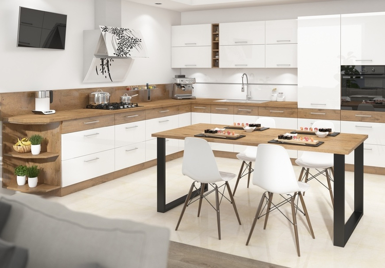 Jídelní stůl je vyroben v jednoduchém industriálním, stylovém a zároveň i moderním designu. Stolová deska je vyrobena z lamina tl. 28 mm v barvě dub lancelot, kovové nohy jsou práškově lakované v černé barvě (profil nohy 80×40 mm). Tyto jídelní stoly nabízíme v různých rozměrech. Dodáváme v... více informací o zboží