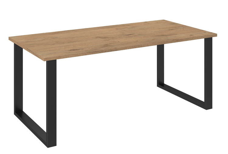 Jídelní stůl je vyroben v jednoduchém industriálním, stylovém a zároveň i moderním designu. Stolová deska je vyrobena z lamina tl. 28 mm v barvě dub lancelot, kovové nohy jsou práškově lakované v černé barvě (profil nohy 80×40 mm). Tyto jídelní stoly nabízíme v různých rozměrech. Dodáváme v demontovaném stavu.CASA 87018