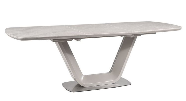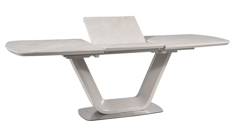 Moderní rozkládací jídelní stůl v elegantním a praktickém provedení bude dominantním prvkem v každé kuchyni, jídelně či kanceláři. Podstavec je vyroben z kvalitní MDF lakované šedou barvou odolnou proti oděru, deska stolu je z MDF a keramiky v šedé barvě. Plocha stolu před rozložením je 90 × 160 cm, plocha stolu po rozložení je 90 × 220 cm. Stůl je určen až pro 8 osob. K tomuto stolu doporučujeme židle z naší nabídky. Dodáváme v demontovaném stavu.CASA 11003