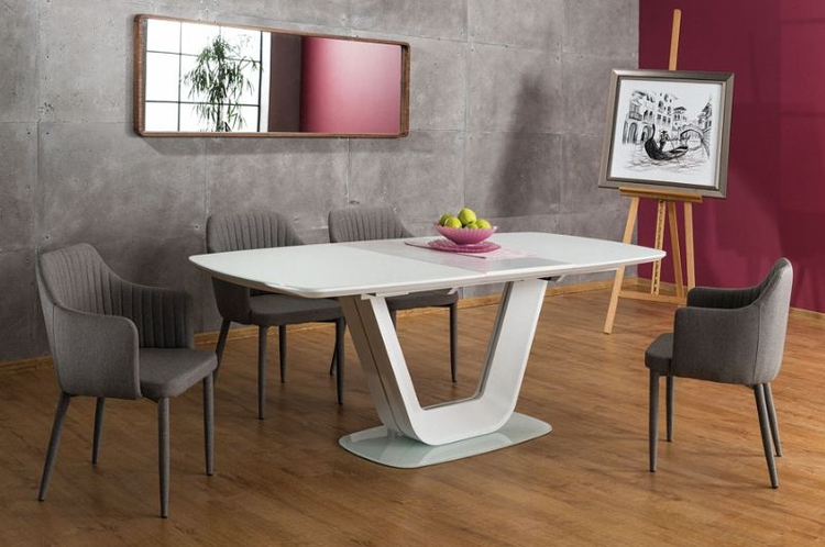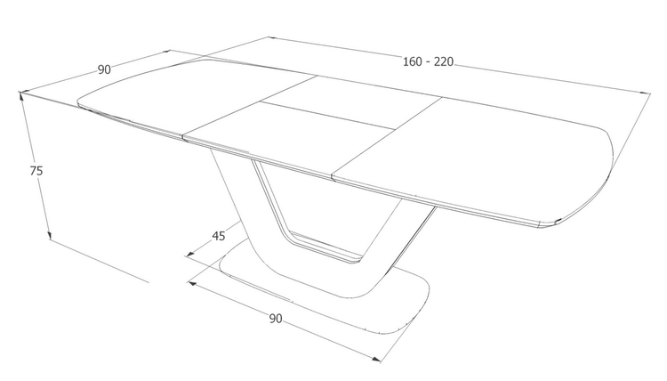 Moderní rozkládací jídelní stůl ve velmi elegantním a praktickém provedení bude dominantním prvkem v každé kuchyni, jídelně či kanceláři. Podstavec je vyroben z kvalitní MDF lakované krémovou barvou odolnou proti oděru, deska stolu je z MDF a z tvrzeného skla v barvě krém. Plocha stolu před rozložením je 90 × 160 cm, plocha stolu po rozložení je 90 × 220 cm. Stůl je určen až pro 8 osob. K tomuto stolu doporučujeme židle z naší nabídky.CASA 11003