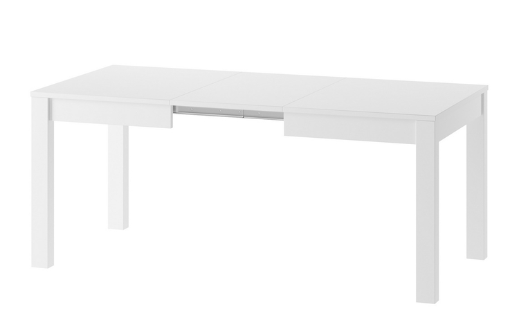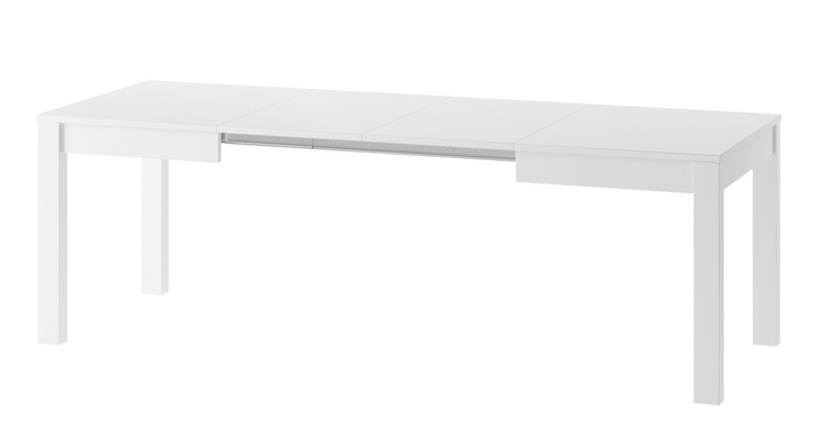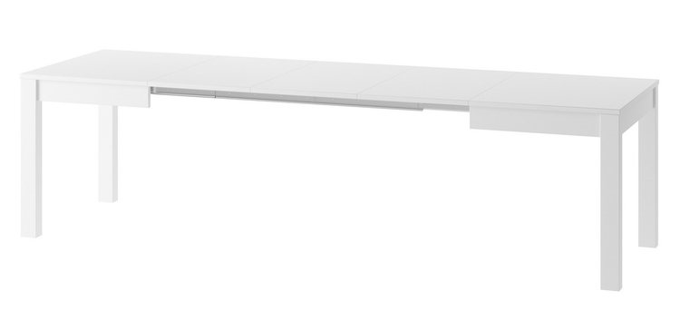Jídelní stůl rozkládací. Deska jídelního stolu je vyrobena z LTD v barvě bílá mat, nohy stolu jsou z materiálu MDF v barvě bílá mat. Tento stůl je možné prodloužit na šíři více rozměrů 130/180/230/280 cm. V rámu stolu jsou uloženy 3 desky k prodloužení stolu. Dodáváme v demontovaném stavu.CASA... více informací o zboží
