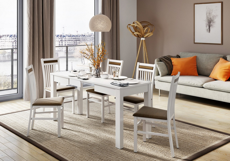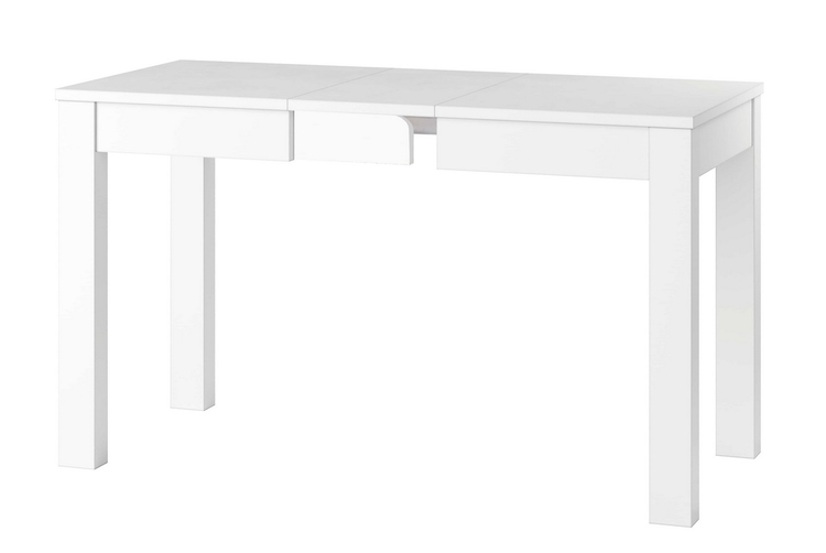 Jídelní stůl rozkládací. Deska jídelního stolu je vyrobena z LTD v barvě bílá mat, nohy stolu jsou z materiálu MDF v barvě bílá mat. Tento stůl je možné prodloužit na šíři více rozměrů 100/130/160 cm. Dodáváme v demontovaném stavu.CASA 75059