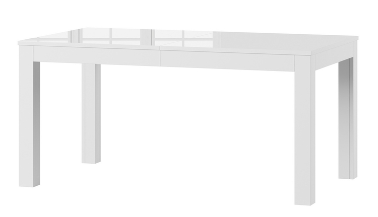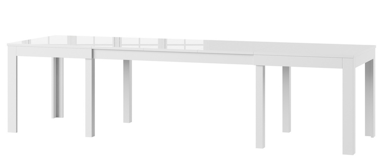 Jídelní stůl rozkládací. Deska jídelního stolu je vyrobena z LTD v barvě bílá lesk, plné nohy stolu jsou z materiálu MDF (nohy typu „L“ jsou vyrobeny z LTD) v barvě bílá. Tento stůl je možné prodloužit na šíři 160 – 300 cm. Dodáváme v demontovaném stavu.CASA 75075