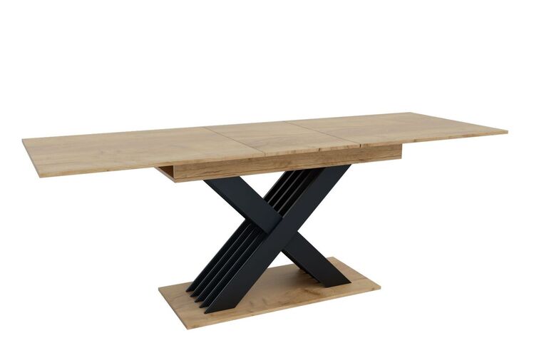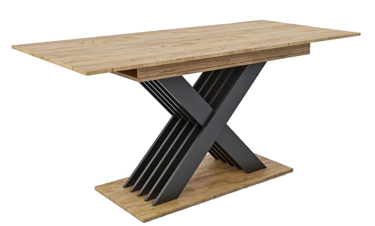 Rozkládací jídelní stůl v elegantním provedení bude dominantním prvkem v kuchyni, jídelně či kanceláři. Stůl je vyroben z kvalitní LTD v kombinaci barev dub kraft zlatý/antracit. Plocha stolu před rozložením je 150×85 cm, plocha stolu po rozložení je 185×85 cm. K tomuto stolu doporučujeme židle z naší nabídky. Dodáváme v demontovaném stavu.CASA 83102