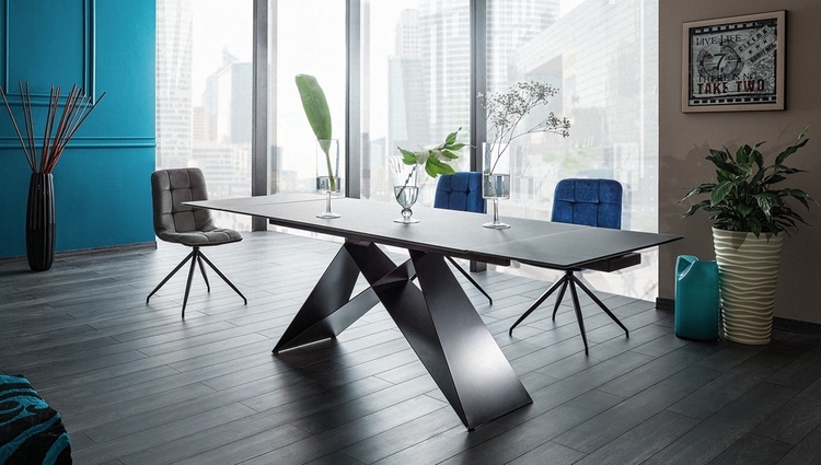 Luxusní rozkládací jídelní stůl ve velmi elegantním provedení bude dominantním prvkem v každé kuchyni, jídelně či kanceláři. Podstavec je vyroben z kovu, deska stolu je vyrobena z tvrzeného skla. Barevné provedení – černá. Plocha stolu před rozložením je 90 × 160 cm, plocha stolu po rozložení je 90 × 240 cm. Stůl je určen až pro 8 osob. K tomuto stolu doporučujeme židle z naší nabídky. Dodáváme v demontovaném stavu.CASA 11763