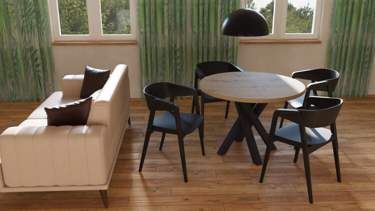 S kompaktním průměrem 100 cm je stůl jako stvořený pro menší prostory,