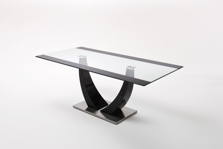 • stůl s podnoží, plát stolu: 12 mm čiré sklo, s pásy černého skla cca. 15 cm na okrajích po délce