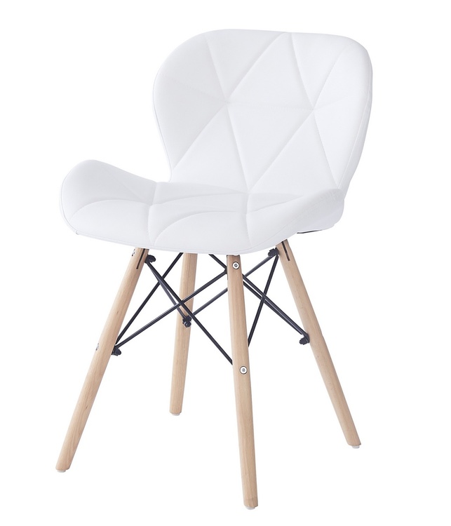 Elegantní čalouněná židle s ergonomickým tvarem. Zajímavě řešená dřevěná konstrukce je v barvě buk s kovovými prvky, čalounění sedáku s prošitím je z ekokůže bílé barvy. Výška sedu je 45 cm. Židle se hodí ke stolům, které naleznete v naší uvedené nabídce. Dodáváme v demontovaném stavu.CASA 95018