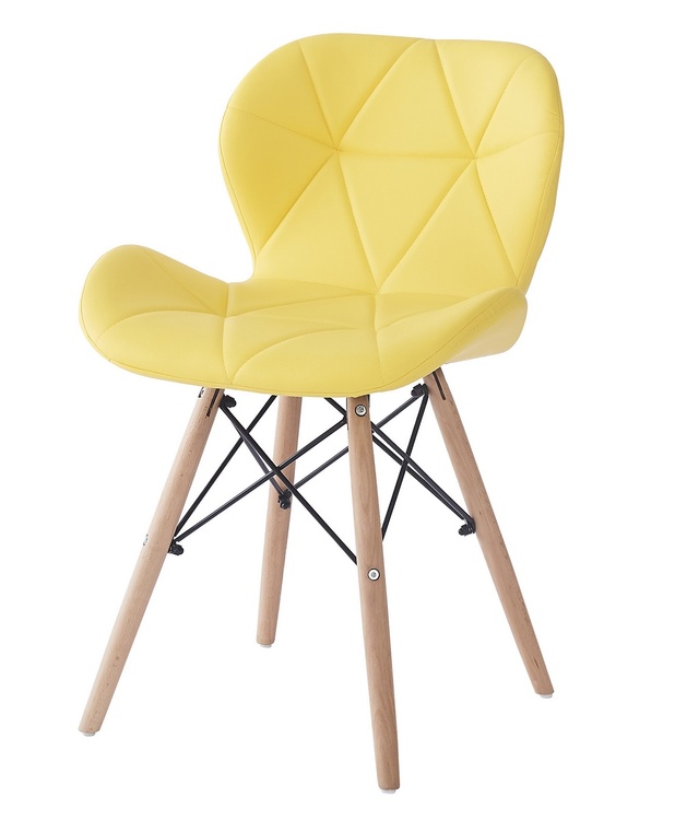 Elegantní čalouněná židle s ergonomickým tvarem. Zajímavě řešená dřevěná konstrukce je v barvě buk s kovovými prvky, čalounění sedáku s prošitím je z ekokůže žluté barvy. Výška sedu je 45 cm. Židle se hodí ke stolům, které naleznete v naší uvedené nabídce.CASA 95018