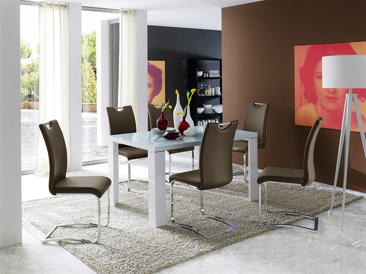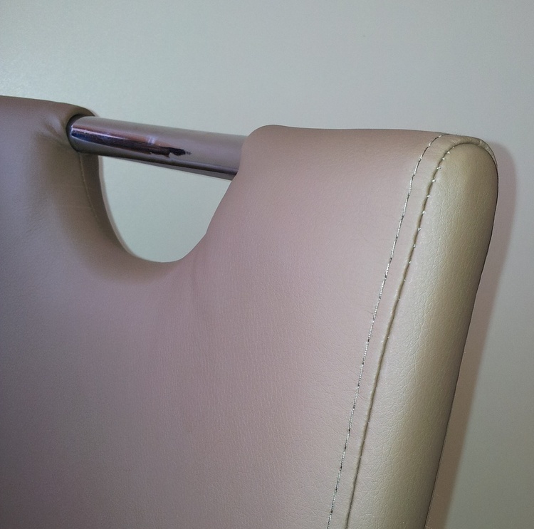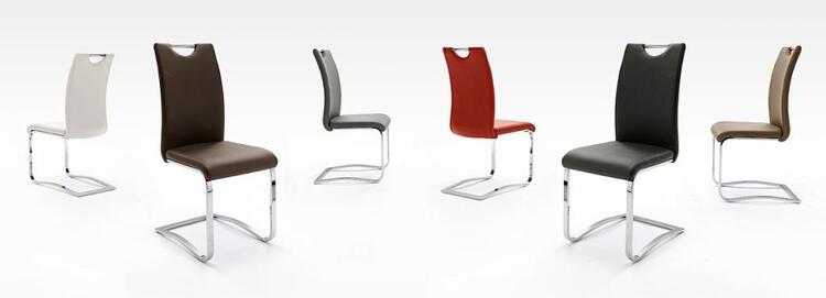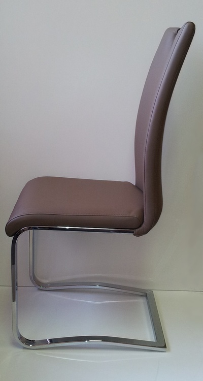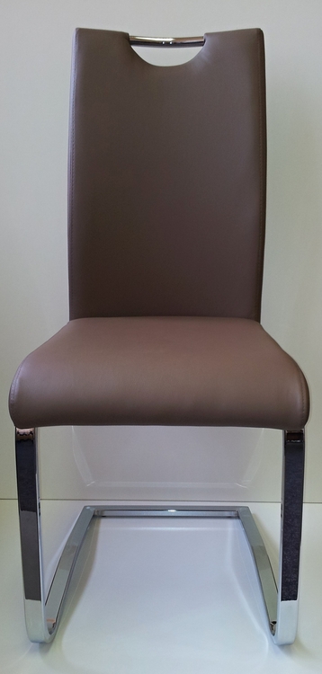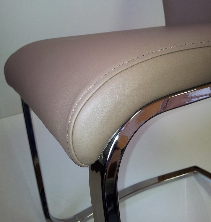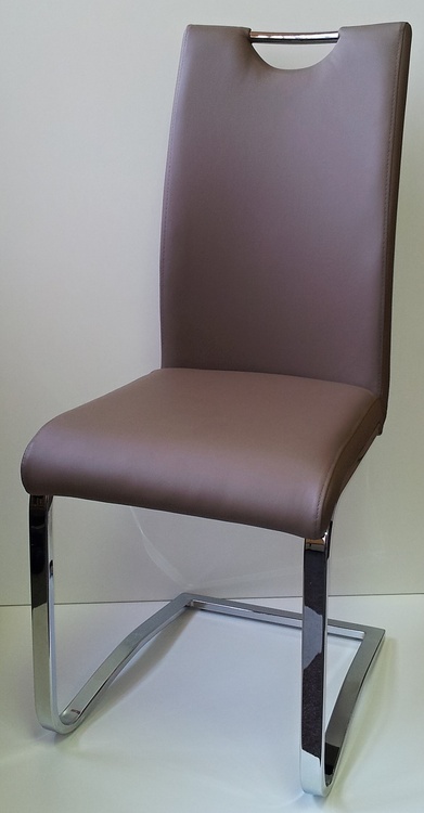 Židle Cool je velice moderní celočalouněná kuchyňská židle na kovové odpružené chromové podnoži. Velice praktické a designově povedené je kovové madlo v horní části opěráku.Provedení židle: ploché pochromované ocelové trubky a potah v kvalitní kožence v barvě dle vlastního výběru (viz. vzorník u zboží)